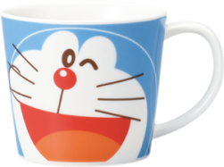 「ドラえもん」と「ドラミ」の顔が全体にプリントされた使いやすい大きさのマグカップ。